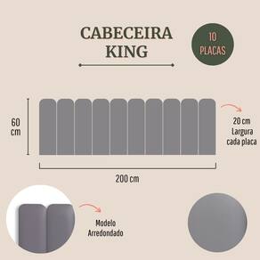 CONFIRA ABAIXO MAIS DETALHES SOBRE O PRODUTO: Tamanho King (10 placas): 200cm (comprimento total) x 60cm (altura) x 3 cm (profundidade). Altura de cada placa: 60 cm Largura de cada placa: 20cm Materiais: 100% MDF; Espuma; Fita 3M; Cores e Tecidos: temos 25 variações de cores e tecidos. Escolha a que você mais gosta.