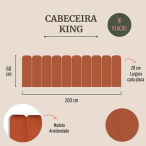 CONFIRA ABAIXO MAIS DETALHES SOBRE O PRODUTO: Tamanho King (10 placas): 200cm (comprimento total) x 60cm (altura) x 3 cm (profundidade). Altura de cada placa: 60 cm Largura de cada placa: 20cm Materiais: 100% MDF; Espuma; Fita 3M; Cores e Tecidos: temos 25 variações de cores e tecidos. Escolha a que você mais gosta.