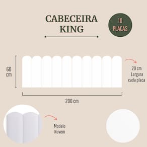 Cabeceira King Estofada Kit 10 Placas Nuvem - Courino Branco