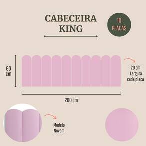 CONFIRA ABAIXO MAIS DETALHES SOBRE O PRODUTO: Tamanho King (10 placas): 200cm (comprimento total) x 60cm (altura) x 3 cm (profundidade). Altura de cada placa: 60 cm Largura de cada placa: 20cm Materiais: 100% MDF; Espuma; Fita 3M; Cores e Tecidos: temos 25 variações de cores e tecidos. Escolha a que você mais gosta.