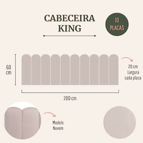 CONFIRA ABAIXO MAIS DETALHES SOBRE O PRODUTO: Tamanho King (10 placas): 200cm (comprimento total) x 60cm (altura) x 3 cm (profundidade). Altura de cada placa: 60 cm Largura de cada placa: 20cm Materiais: 100% MDF; Espuma; Fita 3M; Cores e Tecidos: temos 25 variações de cores e tecidos. Escolha a que você mais gosta.