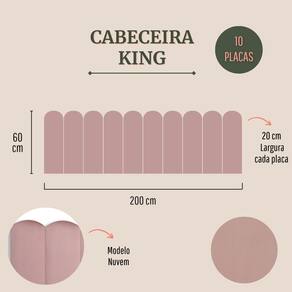 CONFIRA ABAIXO MAIS DETALHES SOBRE O PRODUTO: Tamanho King (10 placas): 200cm (comprimento total) x 60cm (altura) x 3 cm (profundidade). Altura de cada placa: 60 cm Largura de cada placa: 20cm Materiais: 100% MDF; Espuma; Fita 3M; Cores e Tecidos: temos 25 variações de cores e tecidos. Escolha a que você mais gosta.