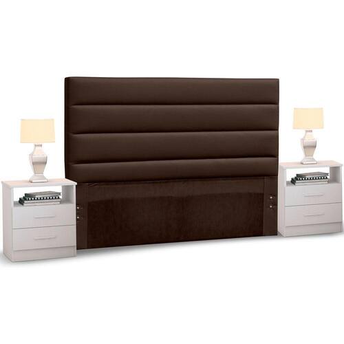 Cabeceira King Marrom 195cm e 2 Mesas de Cabeceira Branco