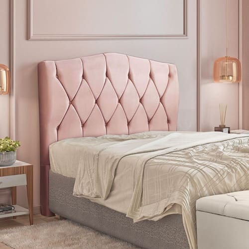 Cabeceira Multifuração Casal - Queen Elegance Veludo - Shop - Rosê