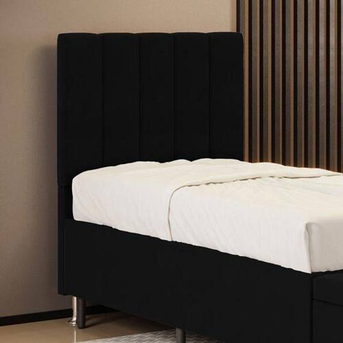 A Cabeceira Nashira foi inspirada para você, que busca conforto e elegância. Possui um design único e detalhes que dão um toque de sofisticação e um ótimo acabamento, tudo isso com ótimo custo benefício. Possui dois pés de 12 cm e fixação via frames para a sustentação do box, não sendo necessário furar a sua cama, apenas encaixa-la nos suportes da cabeceira. Adquira já! Dimensões do Produto Largura: 90 cmAltura: 127 cmProfundidade: 10 cmPeso: 10 KgDimensões do Produto EmbaladoLargura: 92 cmAltura: 129 cmProfundidade: 12 cmPeso: 12 KgCaracterísticas do Produto:Madeira de eucalipto proveniente de reflorestamentoFixação com grampos galvanizadosEspuma Poliuretano D20Revestimento: SuedCor: PretoTamanho: Solteiro para cama box de 88 cmPossui pés: SimTipo de pés: 2 pés PVC de 12 cmEmbalagem: plástico bolha, papelão ondulado, malha, plásticoFixação diretamente no box através de framesGarantia de 3 meses contra defeitos de fábrica.Diferenciais: - Madeira de alta qualidade- Design moderno- Material resistente- Ótimo acabamento- Estrutura reforçadaSistema de Montagem: O produto é enviado montado, sendo necessário apenas a fixação dos frames e pés.Manual de Montagem: SimVolume: 1 VolumeMontagem: Recomendamos que seja feita por um profissionalRecomendação de Limpeza: Utilize pano levemente úmidoObservações importantes- Produto para uso residencial em ambiente interno, não devendo ficar exposto diretamente ao sol, calor e umidades excessivas.- Pode haver alguma diferença de tonalidade entre a imagem e o produto real, por conta do tratamento de imagens e a calibração de cores do seu monitor.- As imagens são meramente ilustrativas, não acompanham objetos de decoração e eletrônicos.