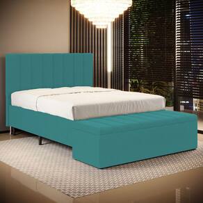 O Kit Cabeceira Nashira e Calçadeira Navi foi inspirada para você, que busca conforto e elegância. Possui um design único e detalhes que dão um toque de sofisticação e um ótimo acabamento, tudo isso com ótimo custo benefício. Possui dois pés de 12 cm e fixação via frames para a sustentação do box, não sendo necessário furar a sua cama, apenas encaixa-la nos suportes da cabeceira. A Calçadeira possui uma ótima capacidade de armazenamento interno, podendo armazenar cobertores, almofadas, entre outros. Adquira já!Dimensões do CabeceiraLargura: 140 cmAltura: 127 cmProfundidade: 10 cmPeso: 15 KgDimensões da CalçadeiraLargura: 140 cmAltura: 45 cmProfundidade: 46 cmPeso: 15 kgDimensões do Produto EmbaladoVolume 1Largura: 142 cmAltura: 129 cmProfundidade: 12 cmPeso: 17 KgVolume 2Largura: 142 cmAltura: 47 cmProfundidade: 48 cmPeso: 17 kgCaracterísticas do Produto:Madeira de eucalipto proveniente de reflorestamentoFixação com grampos galvanizadosEspuma Poliuretano D20Revestimento: SuedCor: Azul TurquesaTamanho: Casal Padrão para cama box de 138 cmPossui pés: SimTipo de pés: 2 pés PVC de 12 cm e 4 sapatasEmbalagem: plástico bolha, papelão ondulado, malha, plásticoFixação diretamente no box através de framesGarantia de 3 meses contra defeitos de fábrica.Diferenciais: - Madeira de alta qualidade- Design moderno- Material resistente- Ótimo acabamento- Estrutura reforçadaSistema de Montagem: O produto é enviado montado, sendo necessário apenas a fixação dos frames e pés.Manual de Montagem: SimVolume: 2 VolumesMontagem: Recomendamos que seja feita por um profissionalRecomendação de Limpeza: Utilize pano levemente úmidoObservações importantes- Produto para uso residencial em ambiente interno, não devendo ficar exposto diretamente ao sol, calor e umidades excessivas.- Pode haver alguma diferença de tonalidade entre a imagem e o produto real, por conta do tratamento de imagens e a calibração de cores do seu monitor.- As imagens são meramente ilustrativas, não acompanham objetos de decoração e eletrônicos.
