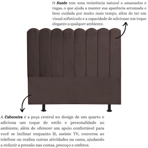 Fabricada com precisão em madeira eucalipto de alta qualidade, esta cabeceira é revestida em suede, um tecido macio que confere um toque de luxo. A combinação de materiais duráveis e a atenção aos detalhes tornam-na o acessório perfeito para valorizar a decoração do seu quarto, adicionando um toque de sofisticação.