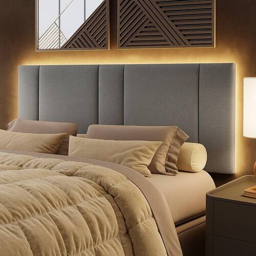 Perfeita para quartos de apartamento, chalés, hotéis de temporada ou sua casa de campo, essa cabeceira estofada em forma de painel valoriza o ambiente e cria uma iluminação suave graças à fita LED que acompanha o produto, tornando suas noites mais relaxantes.