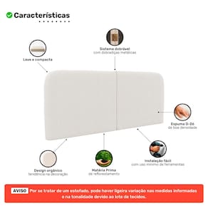 Desenvolvida com estrutura em madeira de eucalipto e espuma D-26, oferece durabilidade, conforto e leveza. Sua parte traseira conta com acabamento em TNT e já acompanha fixadores de parede, facilitando a instalação.