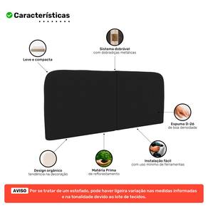 Desenvolvida com estrutura em madeira de eucalipto e espuma D-26, oferece durabilidade, conforto e leveza. Sua parte traseira conta com acabamento em TNT e já acompanha fixadores de parede, facilitando a instalação.