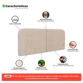 Desenvolvida com estrutura em madeira de eucalipto e espuma D-26, oferece durabilidade, conforto e leveza. Sua parte traseira conta com acabamento em TNT e já acompanha fixadores de parede, facilitando a instalação.