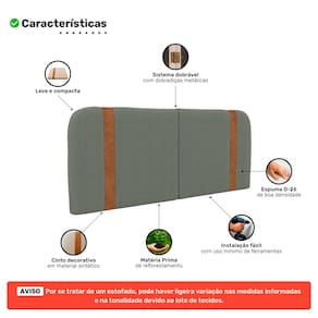Desenvolvida com estrutura em madeira de eucalipto e espuma D-26, oferece durabilidade, conforto e leveza. Sua parte traseira conta com acabamento em TNT e já acompanha fixadores de parede, facilitando a instalação.