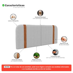 Desenvolvida com estrutura em madeira de eucalipto e espuma D-26, oferece durabilidade, conforto e leveza. Sua parte traseira conta com acabamento em TNT e já acompanha fixadores de parede, facilitando a instalação.