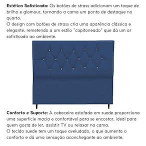 Fabricada com materiais de alta qualidade, como madeira eucalipto e revestimento em suede, esta cabeceira é durável e resistente, além disso os detalhes de costura com strass conferem um toque de sofisticação e elegância ao seu espaço.