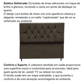 Fabricada com materiais de alta qualidade, como madeira eucalipto e revestimento em suede, esta cabeceira é durável e resistente, além disso os detalhes de costura com strass conferem um toque de sofisticação e elegância ao seu espaço.