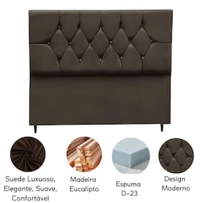 Fabricada com materiais de alta qualidade, como madeira eucalipto e revestimento em Suede, esta cabeceira é durável e resistente, garantindo não apenas estilo, mas também funcionalidade para o seu ambiente.