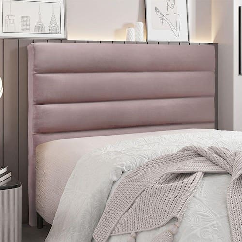 Ela possui estrutura em Madeira Industrializada espuma D-23, no tecido Veludo com costura Italiana com linhas horizontais, que garante durabilidade e resistência, uma obra de arte para o seu quarto.