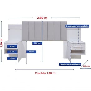 Cabeceira Para Cama Queen Size Ripada Irís Estofada Com 2 Mesas De Cabeceira D` Doro Branco-ripado