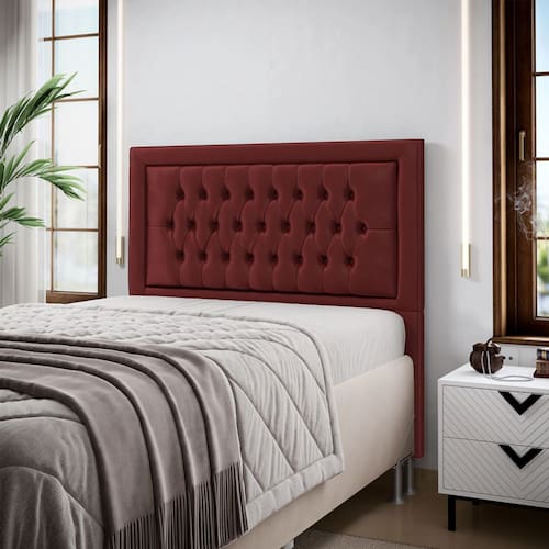 Características do Produto: Madeira de eucalipto proveniente de reflorestamento Fixação com grampos galvanizados Espuma Poliuretano D20 Revestimento: Veludo Tamanho: Para cama Casal-Queen de 158cm Possui pés: Sim Tipo de pés: 2 pés 12 cm Embalagem: Papelão, plástico Fixação diretamente no box através de frames Garantia de 3 meses contra defeitos de fábrica.