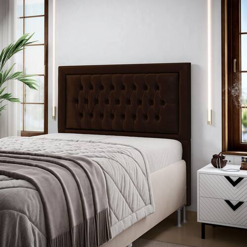 Características do Produto: Madeira de eucalipto proveniente de reflorestamento Fixação com grampos galvanizados Espuma Poliuretano D20 Revestimento: Veludo Tamanho: Para cama Casal-Queen de 158cm Possui pés: Sim Tipo de pés: 2 pés 12 cm Embalagem: Papelão, plástico Fixação diretamente no box através de frames Garantia de 3 meses contra defeitos de fábrica.