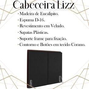 Cabeceira Queen 158 cm Lizz Veludo, é a escolha certa para você que busca conforto e modernidade, tornando o seu quarto muito mais versátil e sofisticado. Estrutura em madeira de eucalipto, que oferece maior durabilidade ao produto. Composta por revestimento em tecido veludo, contorno e botões em tecido corano, conta com espuma D-16 de altíssima qualidade, sapatas plásticas e acompanha frames para facilitar a fixação no box, é ideal para colchão Queen de 158 cm. Com design que proporciona elegância, charme e luxuosidade ao seu quarto. Este móvel chegará na sua casa separado em 01 volume.