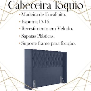 Cabeceira Queen 158 cm Toquio Veludo, é a escolha certa para você que busca conforto e modernidade, tornando o seu quarto muito mais versátil e sofisticado. Estrutura em madeira de eucalipto, que oferece maior durabilidade ao produto. Composta por revestimento em tecido veludo, conta com espuma D-16 de altíssima qualidade, sapatas plásticas e acompanha frames para facilitar a fixação no box, é ideal para colchão Queen de 158 cm. Com design que proporciona elegância, charme e luxuosidade ao seu quarto. Este móvel chegará na sua casa separado em 01 volume.