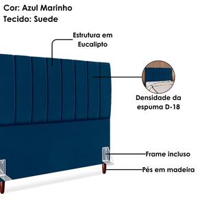 Cabeceira Queen Carla, moderna e aconchegante trazendo elegância para seu quarto! Estrutura em Madeira de Eucalipto (reflorestada), estofada em espuma (densidade D-18) e revestida em tecido Suede (clássico aveludado com toque suave). Incluso Frame (metal resistente com reforço lateral e acabamento em pintura epóxi) para fixação em camas Box e pés em madeira maciça (12 cm). Pode haver variação no design do frame dependendo do lote de peças. A função do acessório e usabilidade permanece a mesma. Este produto será entregue em 1 volume.