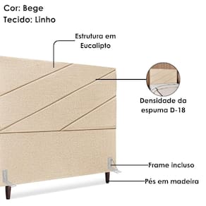 Definição de conforto a Cabeceira Queen Cristal foi desenvolvida para agregar mais modernidade e aconchego ao quarto! Com estrutura em Madeira de Eucalipto (reflorestada) e estofada em espuma (densidade D-18), conta com revestimento em tecido Linho (resistente e levemente texturizado) e detalhe Diagonal na costura. Incluso Frame (metal resistente com reforço lateral e acabamento em pintura epóxi) para fixação em camas Box e pés em madeira maciça (12 cm). Pode haver variação no design do frame dependendo do lote de peças. A função do acessório e usabilidade permanece a mesma. Este produto será entregue em 1 volume.