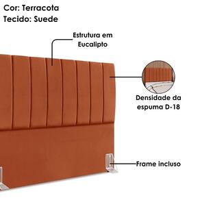 Cabeceira Queen Dalia, modelo aconchegante trazendo um design moderno para seu quarto! Estrutura em Madeira de Eucalipto (reflorestada), estofada em espuma (densidade D-18) e revestida em tecido Suede (clássico aveludado com toque suave). Incluso Frame (metal resistente com reforço lateral e acabamento em pintura epóxi) para fixação em camas Box e sapatas plásticas. Pode haver variação no design do frame dependendo do lote de peças. A função do acessório e usabilidade permanece a mesma. Este produto será entregue em 1 volume.