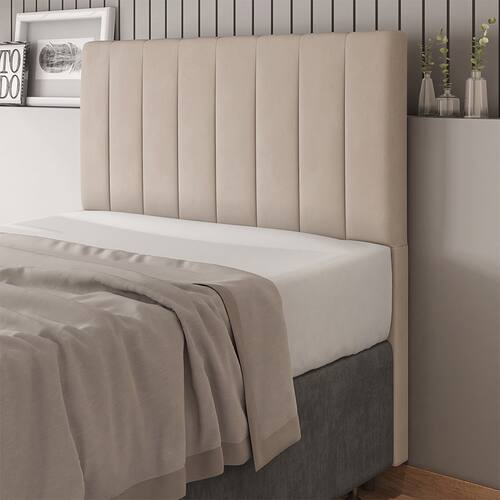 Características Estrutura em madeira de reflorestamento eucalipto Espuma com densidade D-18 Tecido em veludo 02 Sapatas plásticas Detalhe em costura na vertical Ideal para cama box queen 158cm ACOMPANHA FRAME NÃO ACOMPANHA CAMA BOX *A imagem é ilustrativa, podendo sofrer alterações na cor do tecido de acordo com a configuração de cada aparelho.