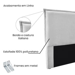 A Cabeceira Veneza tem o seu conceito artístico minimalista de que menos é mais! Fabricada com materiais de alto nível, sua costura e borda Italiana que fazem a diferença e entrega muita classe no produto. Perfeita para quem prefere aquela peça mais discreta, porém entregando delicadeza e elegância. Altura dos Pés: 1 Ambiente Principal: Quarto Cabeceira Estofada: Sim Cor: Grigio Cor do Produto: Grigio Escala de Brilho: Semi-Fosco Extensível: Não Fixação Box: Sim Fixação na Parede: Não Itens Inclusos: 1 Cabeceira, Kit Ferragens e Manual de Montagem Largura do Colchão Indicado: 160 Linha ou Coleção: Veneza Manual de Montagem e Instalação: https://cdn2.madeiramadeira.com.br/atributo/spezzia-decor/1263849-978780-963153-manual-cabeceira.pdf Material dos Pés: Plástico Material Principal: Madeira Maciça Necessita Montagem: Não Origem do Produto: Nacional Peso: 9,8 kg Possui Espelho: Não Possui Possui Mesa de Cabeceira: Não Possui Pés: 02 Possui Rodízio: Não Possui Vidro: Não Recomendações de Uso, Manutenção e Limpeza: Limpeza: Utilize pano levemente úmido Sapatas Niveladoras: Sim Tipo de Colchão: Queen Tipo de Madeira Maciça: Eucalipto