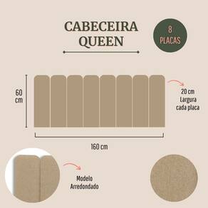 Cabeceira Queen Estofada Kit 8 Placas Arredondada - Linho Bege