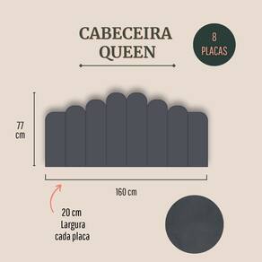 Cabeceira Queen Estofada Kit 8 Placas Concha - Suede Cinza Escuro