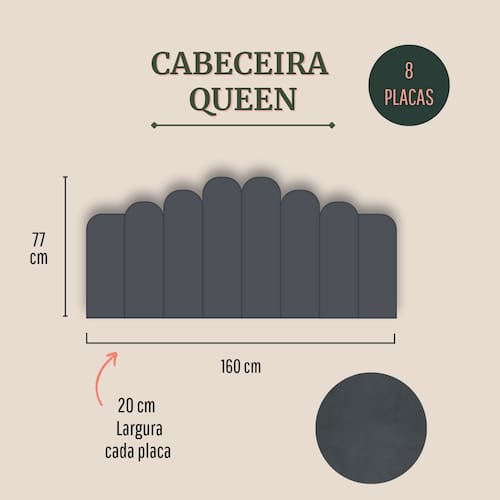Tamanho queen (8 placas): 160cm (comprimento total) x 77cm (altura) x 3 cm (profundidade).