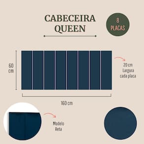Cabeceira Queen Estofada Kit 8 Placas Reta - Veludo Azul Marinho