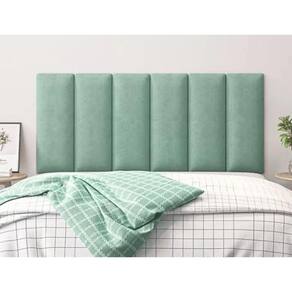 Descrição técnica Atura: 60 cm Profundidade: 3 cm Comprimento: 160 cm 20 cm por módulo; a cama queen leva 08 módulos Materiais: - madeira mdf de reflorestamento; - espuma d28, antialérgica; - veludo verde claro.