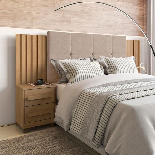 A cabeceira tem um design incrível para decorar o seu quarto.