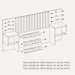 Com design contemporâneo e acabamento ripado de alto padrão, ela conta com criados-mudos flutuantes integrados, proporcionando elegância e funcionalidade ao ambiente.