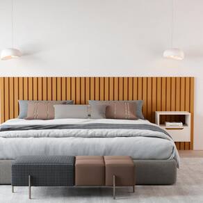 A cabeceira ripada traz um design moderno e imponente, enquanto as 2 Mesas de Cabeceira Jatobá oferecem praticidade e um toque de aconchego. Ideal para quem busca qualidade, beleza e organização, essa Cabeceira é a escolha perfeita para renovar o ambiente com muito estilo e durabilidade.