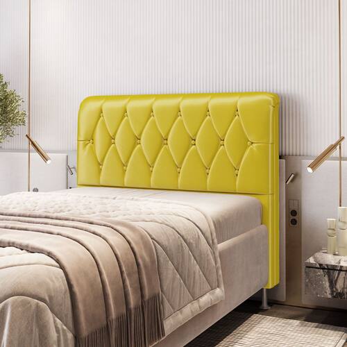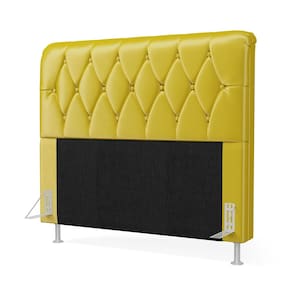Características do Produto: Madeira de eucalipto proveniente de reflorestamento Fixação com grampos galvanizados Espuma Poliuretano D20 Revestimento: Veludo Cor: Amarelo Tamanho: Casal-Queen para cama box de 158 cm Possui pés: Sim Tipo de pés: 2 pés 12 cm Embalagem: Papelão, plástico Fixação diretamente no box através de frames Garantia de 3 meses contra defeitos de fábrica.