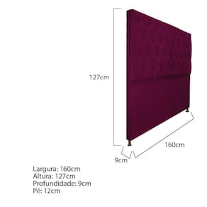 A Cabeceira Sofia é perfeita! Ela agrega sofisticação ao seu quarto e com seus detalhes em capitonê e seu tecido de alta qualidade, faz com que sua decoração fique impecável! Especificações Técnicas da Cabeceira Estofada Sofia: - Altura: 120 cm; - Largura: 165 cm (suporta cama de até 160cm); - Profundidade: 9 cm; - Altura do Pé: 2 cm; - Peso: 20 kg. Diferenciais da Cabeceira Estofada Sofia: - Material da Estrutura: fabricado com Madeira Pinus e Eucalipto Reflorestada, e alguns detalhes em MDF; - Detalhes do Tecido: possui detalhes em Capitonê, onde os botões são revestidos no mesmo tecido do produto e finalizados com excelente acabamento; - Detalhes dos Pés: acompanha sapata plástica com alta resistência; - Volumes: nessa compra você receberá um único produto. Recomendações de limpeza: -Limpar com flanela limpa e seca. Não molhar o móvel e não expor em lugar úmido ou próximo de fontes de calor. Não usar produtos abrasivos. Observações Importantes: - As imagens ambientadas são meramente ilustrativas e podem apresentar itens que não compõe o produto; - Objetos decorativos que aparecem na foto não acompanham o produto; - As cores do produto podem variar de acordo com o monitor, a iluminação do ambiente, ou sua percepção visual; - A Cabeceira Estofada Sofia chegará montada para você; - Confira as dimensões antes da compra e certifique-se de que o produto passará por elevadores, portas e corredores, já que nossa entrega não inclui a subida de lances de escada, ou o lançamento de produtos; - Ao receber seus produtos, verifique no ato do recebimento qualquer dano na embalagem. Caso tenha alguma avaria, favor não assinar o comprovante de recebimento (A transportadora tem obrigação de esperar a conferência); - Produto para uso residencial em ambiente interno, não devendo ficar exposto diretamente ao sol, calor e umidades excessivas.