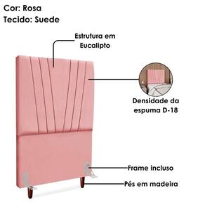 Cabeceira Solteiro Bélgica, moderna e aconchegante trazendo elegância para seu quarto! Estrutura em Madeira de Eucalipto (reflorestada), estofada em espuma (densidade D-18) e revestida em tecido Suede (clássico aveludado com toque suave). Incluso Frame (metal resistente com reforço lateral e acabamento em pintura epóxi) para fixação em camas Box e pés em madeira maciça (12 cm). Pode haver variação no design do frame dependendo do lote de peças. A função do acessório e usabilidade permanece a mesma. Este produto será entregue em 1 volume.
