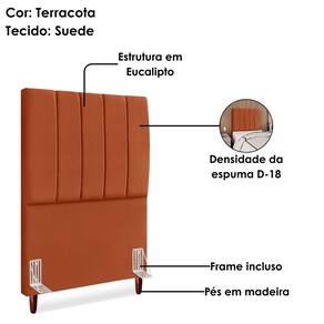 Cabeceira Solteiro Carla, moderna e aconchegante trazendo elegância para seu quarto! Estrutura em Madeira de Eucalipto (reflorestada), estofada em espuma (densidade D-18) e revestida em tecido Suede (clássico aveludado com toque suave). Incluso Frame (metal resistente com reforço lateral e acabamento em pintura epóxi) para fixação em camas Box e pés em madeira maciça (12 cm). Pode haver variação no design do frame dependendo do lote de peças. A função do acessório e usabilidade permanece a mesma. Este produto será entregue em 1 volume.
