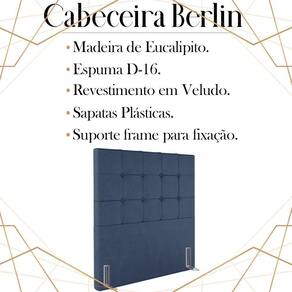 Cabeceira Solteiro 88 cm Berlin Veludo, ideal para inovar o seu quarto com toque luxuoso e ao mesmo tempo refinado. Estrutura em madeira de eucalipto, que oferece maior durabilidade ao produto. Composta por revestimento em tecido veludo, conta com espuma D-16 de altíssima qualidade, sapatas plásticas e acompanha frames para facilitar a fixação no box, é ideal para colchão Solteiro de 88 cm. Unindo elementos do design contemporâneo, que proporcionam uma ambientação moderna e com acabamentos sofisticados. Este móvel chegará na sua casa separado em 01 volume.