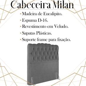 Cabeceira Solteiro 88 cm Milan Veludo, é a escolha certa para você que busca conforto e modernidade, tornando o seu quarto muito mais versátil e sofisticado. Estrutura em madeira de eucalipto, que oferece maior durabilidade ao produto. Composta por revestimento em tecido veludo, conta com espuma D-16 de altíssima qualidade, sapatas plásticas e acompanha frames para facilitar a fixação no box, é ideal para colchão Solteiro de 88 cm. Com design que proporciona elegância, charme e luxuosidade ao seu quarto. Este móvel chegará na sua casa separado em 01 volume.