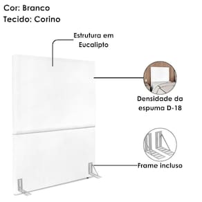 Produto: Cabeceira Solteiro 90 cm Com Frame | Classificação da Cama: Solteiro | Cor: Branco