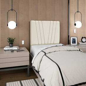 Cabeceira Solteiro 90cm Bell Suede Bege Rm Bege