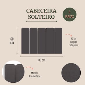 Tamanho Solteiro (5 placas): 100cm (comprimento total) x 60cm (altura) x 3 cm (profundidade).