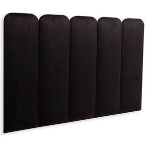 Cabeceira Solteiro Estofada Kit 5 Placas Arredondada - Suede Preto
