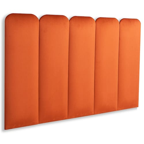 Cabeceira Solteiro Estofada Kit 5 Placas Arredondada - Veludo Terracota - Laranja